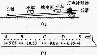12.某同学设计了一个用打点计时器研究动量守恒定律的实验:在小车A的前端粘有橡皮泥,推动小车A使之做匀速运动,然后与原来静止在前方的小车B相碰并黏合成一体,继续做匀速运动。他设计的具体装置如图(a)所示,在小车A后连着纸带,电磁打点计时器电源频率为50HZ,长木板右端下面垫放小木片用以平衡摩擦力。