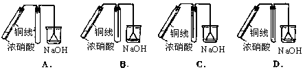 16.下列装置中间的试管收集浓硝酸和铜线反应所生成的气体,何者可使收到的气体中空气的含量最少 ( C )