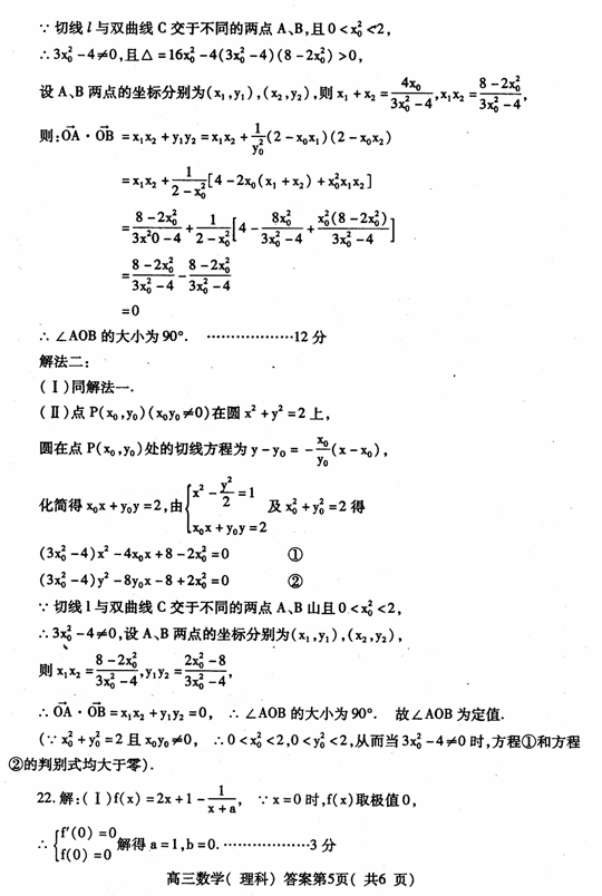 (Ⅱ)设直线l是圆O:x2+y2=2上动点P(xo,yo)(xoyo≠0)处的切线,l与双曲线C交于不同的两点A、B,证明:∠AOB为定值.