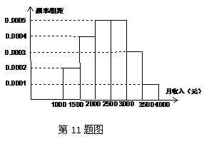 11.一个社会调查机构就某地居民的月收入调查了10000人,并根据所得数据画了样本的频率分布直方图(如下图).为了分析居民的收入与年龄、学历、职业等方面的关系,要从这10000人中再用分层抽样方法抽出100人作进一步调查,则在