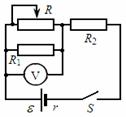 如图电路中,电源电动势为12V,内电阻不能忽略。闭合S后,调整R的阻值,使电压表的示数增大⊿U=2V,在这一过程中: ( )