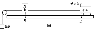 12. (8分)如图甲所示是某同学探究小车加速度与力的关系的实验装置,他将光电门固定在水平轨道上的B点,用不同重物通过细线拉同一小车,每次小车都从同一位置A由静止释放.![]()