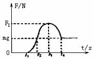利用传感器和计算机可以研究力的大小变化的情况,实验时让某消防队员从平台上跳下,自由下落H后双脚触地,他顺势弯曲双腿,他的重心又下降了h。计算机显示消防队员受到地面支持力F随时间变化的图象如图所示。根据图象提供的信息,以下判断正确的是