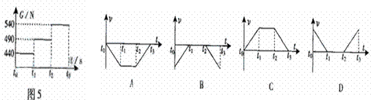 时间段内,弹簧秤的示数如图5所示,电梯运行的v-t图可能是(取电梯向上运动的方向为正)