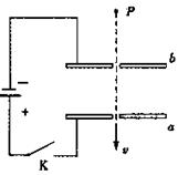a和b,分别与电源的正、负极相连,两板的中央沿竖直方向各有一个小孔,今有一个带正电的液滴,自小孔的正上方的P点由静止自由落下,先后穿过两个小孔后的速度为v1.若使a板不动,若保持电键K断开或闭合,b板向上或向下平移一小段距离,相同的液滴仍然从P点由静止自由落下,先后穿过两个小孔后的速度为v2,在不计空气阻力的情况下,下列说法正确的是 ( )