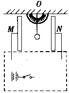 11.(10)某研究性学习小组设计了以下方法来测量物体的带电量.如图所示的小球是一个外表面镀有金属膜的空心塑料球,用绝缘丝线悬挂于O点,O点固定一个可测量丝线偏离竖直方向角度的量角器,M、N是两块相同的、正对着平行放置的金属板(加上电压后其内部电场可看作匀强电场).另外还要用到的器材有天平、刻度尺、电压表、直流电流表、开关、滑动变阻器及导线若干.该小