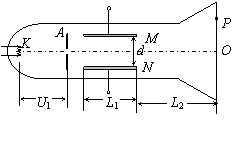 1.(选做8分)如图所示为一真空示波管,电子从灯丝K发出(初速度不计),经灯丝与A板间的加速电压U1加速,从A板的中心孔沿中心线KO射出,然后进入两块平行金属板M、N形成的偏转