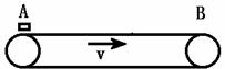 (8分)如图所示,为水平传送带装置,绷紧的皮带AB始终保持以v=lm/s的速度移动,一质量为m=0.5kg的物体,从离皮带很近处竖直落在A处.若物体与皮带间的动摩擦因数为μ=0.1,AB间距为L=2.5m.试求: