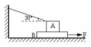 木板B放在水平地面上,在木板B上放一重1200N的A物体,物体A与木板B间,木板与地间的摩擦因数均为0.2,木板B重力不计,当水平拉力F将木板B匀速拉出,绳与水平方向成30°时,问绳的拉力T多大?水平拉力多大?重力加速度取g=10m/s2。