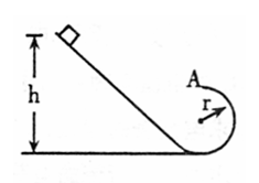 19.(9分)如图所示,质量m=100g的小物块,从距地面h=2.0m处的斜轨道上由静止开始下滑,与斜轨道相接的是半径r=0.4m的圆轨道,若物体运动到圆轨道的最高点A时,物块对轨道的压力恰好等于它自身所受的重力。求物块从开始下滑到A点的运动过程中克服阻力做的功。(取g=10m/s2)