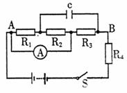21.(9分)如图所示,电路中接一电动势为4V,内电阻为2Ω的直流电源,电阻R1、R2、R3、R4的阻值均为4Ω,电容器的电容为30μF,电流表的内阻不计,当电路稳定后,