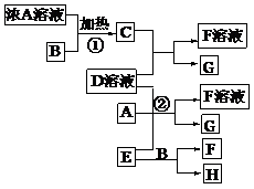 13.有关物质存在如图所示的转化关系(部分产物已省略)。通常C为气体单质,G为紫黑色固体单质。实验室中,常用固体E在B的催化下加热制取气体单质H。