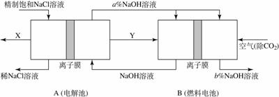 (3)氯碱工业是高耗能产业,一种将电解池与燃料电池相组合的新工艺可以节(电)能30%以上。在这种工艺设计中,相关物料的传输与转化关系如下图所示,其中的电极未标出,所用的离子膜都只允许阳离子通过。