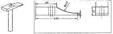 (5)锤子使用了一段时间后,锤柄会有所磨损 ,我们往往需要在锤头和锤柄结合部位填塞铁片,如果将右上图所示铁片(宽1厘米,厚2毫米)打算从中间截断,除钳工操作台、直角尺、画针外,请你选择合适的工具(只填序号) (1分)