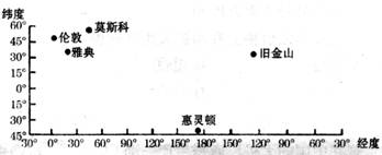 Hour”(地球1小时)活动在全球展开。全球上千个城市,在当地区时20点30分依次熄灭电灯和关闭电源1小时。结合右图中五城市经纬度的分析,正确的是
