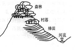 位于云南省元阳等地的哈尼族梯田被盛赞为人与自然高度协调的生态农业(如右图)。与江南丘陵不同的是,哈尼族人的村寨在半山腰的梯田上方,其好处是
