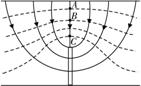 如图所示,实线为电场线,虚线为等势面。且AB=BC,电场中A、B、C三点的场强分别为EA、EB、EC,电势分别为jA、jB、jC,AB、BC间的电势差分别为UAB、UBC,则下列关系式中正确的是