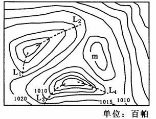 5.若图中m所在的天气系统水平气流呈顺时针方向流动,则等值线m的数值可能为( )