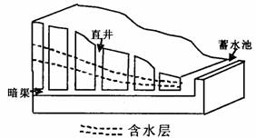《史记》中记载的“井渠”,就是今天我们所说的坎儿井。坎儿井是开发利用地下水的一古老的水平集水建筑物,多建于山麓、冲积扇地带。现存的坎儿井,多为清代以来陆续修建,如今仍浇灌着大片良田。读“坎儿井示意图”回答9-10题。