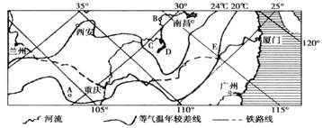 读“构想中的兰(州)厦(门)铁路及沿线地区示意图”,回答1-3题。