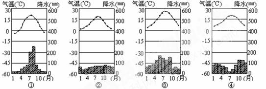 8.下列各图中,能正确表示甲、乙两地气候类型的是