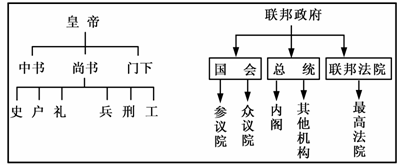 9.观察下面反映中西政治体制的图示,这两种政治体制的相同点不包括 ( )
