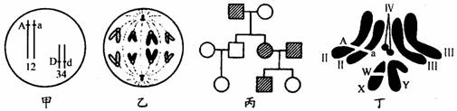 D.丁图表示某果蝇染色体组成,其配子基因型有AxW、axW两种
