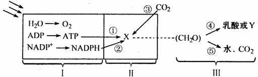 B.能够在叶肉细胞生物膜上进行的生理过程有Ⅱ、Ⅲ