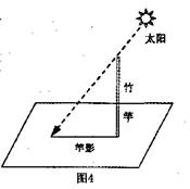 兴趣小组采用“立竿测影”方法(如图4)测定该岛经纬度,必须观测和记录的数据(当天太阳直射点纬度与竹竿长度已知)是 ( )