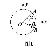 11.如图1所示,点A、B是单位圆(圆心在原点,半径为1的圆)上两点,OA、OB与x轴正半轴所成的角分别为![]()
