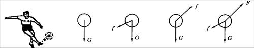刻的受力图中,正确的是(G为重力,F为脚对球的作用力,f为空气阻力)