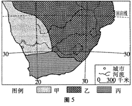 读“某大洲局部自然带分布示意图”(图5),完成9-10题。