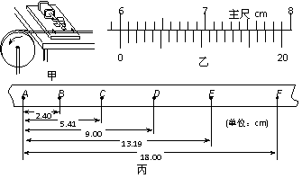 ).我们用电磁打点计时器、米尺、游标卡尺、纸带、复写纸来完成下述实验:(打点计时器所接交流电的频率为50Hz,A、B、C、D……为计数点,相邻两计数点间有四个点未画出)