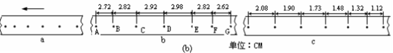 浙江省杭州高中2010届高三第二次月考如图(a)所示,小车放在斜面上,车前端拴有不可伸长的细线,跨过固定在斜面边缘的小滑轮与重物相连,小车后面与打点计时器的纸带相连。起初小车停在靠近打点计时器的位置,重物到地面的距离小于小车到滑轮的的距离。启动打点计时器,释放重物,小车在重物的牵引下,由静止开始沿斜面向上运动,重物落地后,小车会继续向上运动一段距离。打点计时器使用的交流电频率为50Hz。图(b)中a、b、c是小车运动纸带上的三段,纸带运动方向如箭头所示。