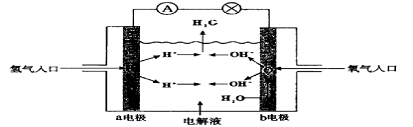 3. (2004年天津) 下图为氢氧燃料电池原理示意图,按照此图的提示,下列叙述不正确的是