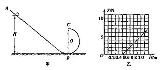 24.(15分)在半径为R=5000km某星球表面,宇航员做了如下实验,实验装置如图甲所示,竖直平面内的光滑轨道由斜轨道AB和圆弧轨道BC组成,将质量m=0.2kg的小球,从轨道AB上的高H处的某点静止释放,用力传感器测出小球经过C点时对轨道的压力F,改变H的大小,可测出F随H的变化关系如图乙所示,求: