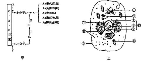 26.(17分)甲图表示生物体内主要生命物形成的示意图。乙图表示细胞的模式结构,请据图回答:(提示:I过程为转录;括号内填写编号)