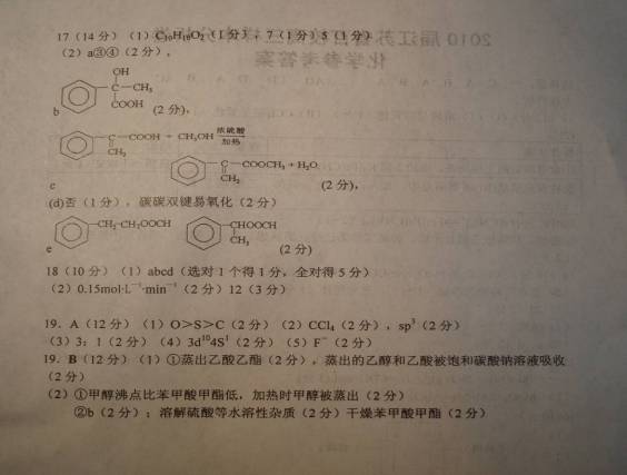 19.(12分)本题包括A、B两小题,分别对应于“物质结构与性质”和“实验化学”两个选修模块的内容。请选择其中一题,并在相应的答题区域内作答。若两题都做,则按A题评分。