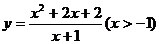 此题不宜“逆求”(判别式法),因为⊿≥0不能保证x>-1(这是使用“判别式法”时需特别注意的)。记x+1=t,(t>0),此时x=t-1,设g(t)=