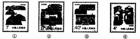 55.下列诗歌反映了不同地区的文化和环境,请根据诗歌内涵选择相应的民居邮票:(2分)