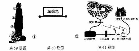 61.我们在生活中时时刻刻要与水相伴。下图是城市家庭自来水的获取过程,读图并回答问题:(2分)