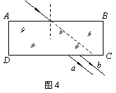 如图4所示,一束复色光斜射到置于空气中的厚平板玻璃(上、下表面平行)的上表面,复色光穿穿过玻璃后从下表面射出,变为a、b两束平行单色光。关于这两束单色光,下列说法中正确的是