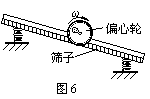 如图6所示,将一个筛子用四根弹簧支起来(后排的两根弹簧未画出),筛子上装一个电动偏心轮,这就做成了一个共振筛。工作时偏心轮被电动机带动匀速转动,从而给筛子施加与偏心轮转动周期相同的周期性驱动力,使它做受迫振动。现有一个固有周期为0.80s的共振筛,电动偏心轮的转速是80r/min,在使用过程中发现筛子做受迫振动的振幅较小。已知增大偏心轮电动机的输入电压,可使其转速提高;增加筛子的质量,可以增大筛子的固有周期。下列做法中可能实现增大筛子做受迫振动的振幅的是