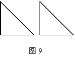 9、如图9,用两块大小相同的等腰直角三角形纸片做拼图游戏,则下列图形:①平行四边形(不包括矩形、菱形、正方形);②矩形(不包括正方形);③正方形;④等边三角形;⑤等腰直角三角形,其中一定能拼成的图形是 .(只填序号)