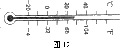 14、温度与我们的生活息息相关,你仔细观察过温度计吗?如图12是一个温度计实物示意图,左边的刻度是摄氏温度(℃),右边的刻度是华氏温度(°F),设摄氏温度为x(℃),华氏温度为y(°F),则y是x的一次函数.