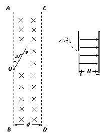 12.(18分)如图所示,在空间中存在垂直纸面向里的场强为B匀强磁场,其边界AB、CD的宽度为d,在左边界的Q点处有一质量为m,带电量为负q的粒子沿与左边界成30o的方向射入磁场,粒子重力不计.求: