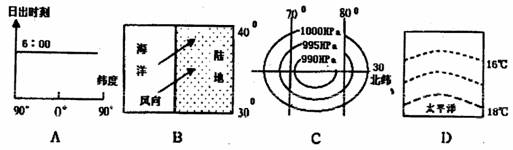 3.下列四幅图能正确反映此时世界各地地理现象的是 ( )