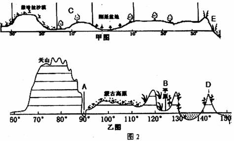 D.甲乙两图中的荒漠带自然环境均是由于深居大陆内部海洋水汽难以到达所致