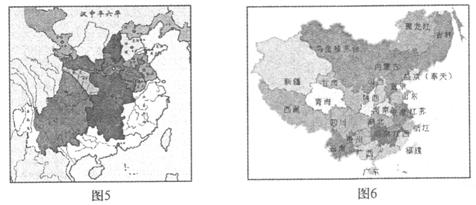 14.图5、图6分别为汉代和清代一级行政区划示意图。从汉到清区划密度的变化所反映的本质要素是
