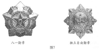 19.图7是1955年中华人民共和国授予在中国人民革命战争时期有功人员的三枚功勋证章 中的两枚,它们分别印证的是